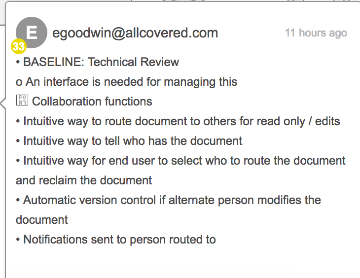 # Baseline - Technical Review Needed Interface for Collaborative functions