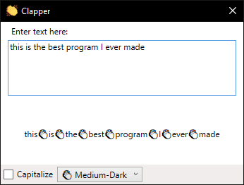 Clapper Pretty easy to use. Enter Text Set options Copy text and paste somewhere else Download latest build