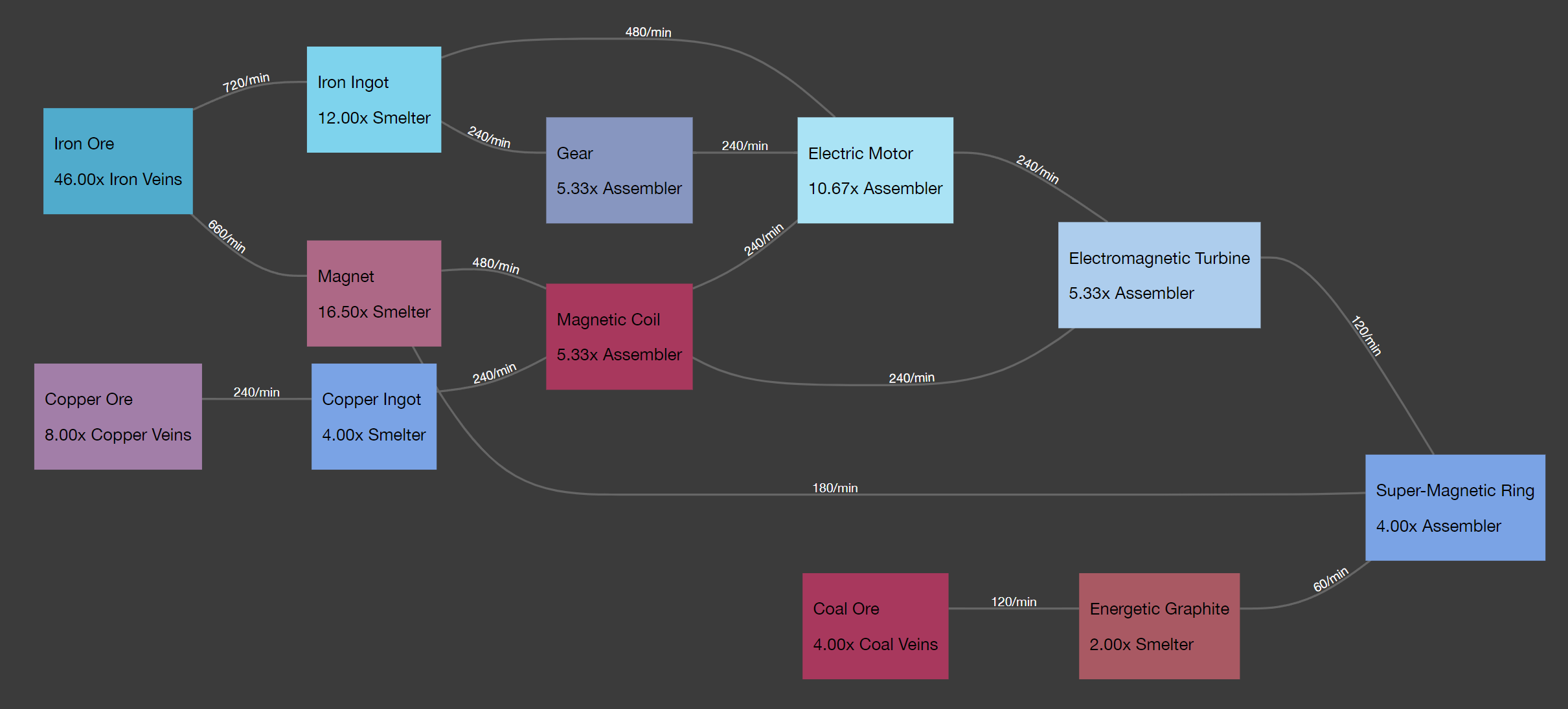 In this example it would also affect the Magnets. It's hard to build the smelters and then split the output to get the ratio. Same for Iron Ingot and Magnetic Coil.