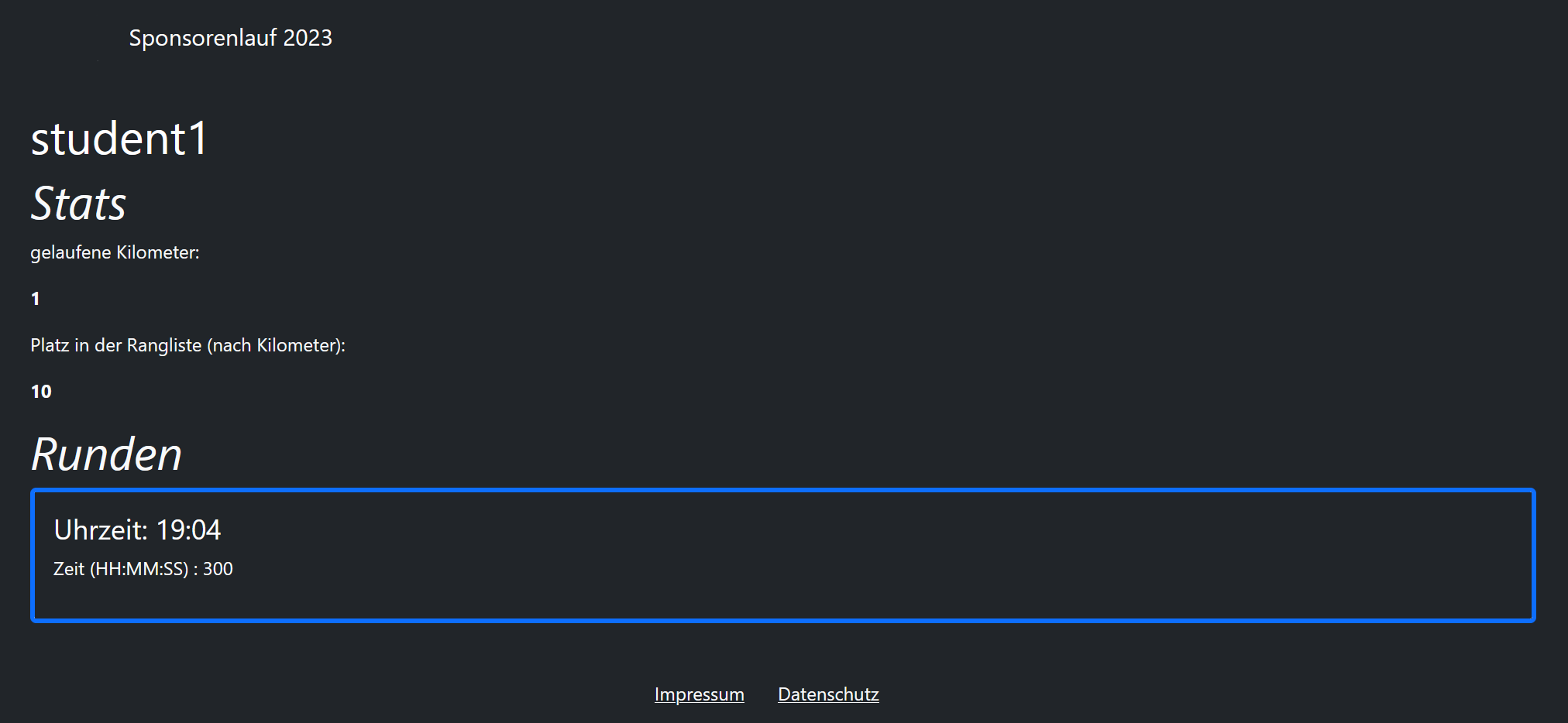 - Personal Analytics Site: The students can view their personal stats (number of rounds, distance and time they took for a round) by typing their personal number on the front page.