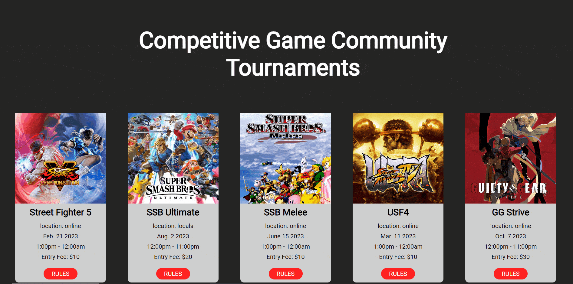 This web app: Competitive Game Community Tournaments