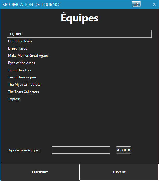 - La gestion des équipes et des participants des tournois.