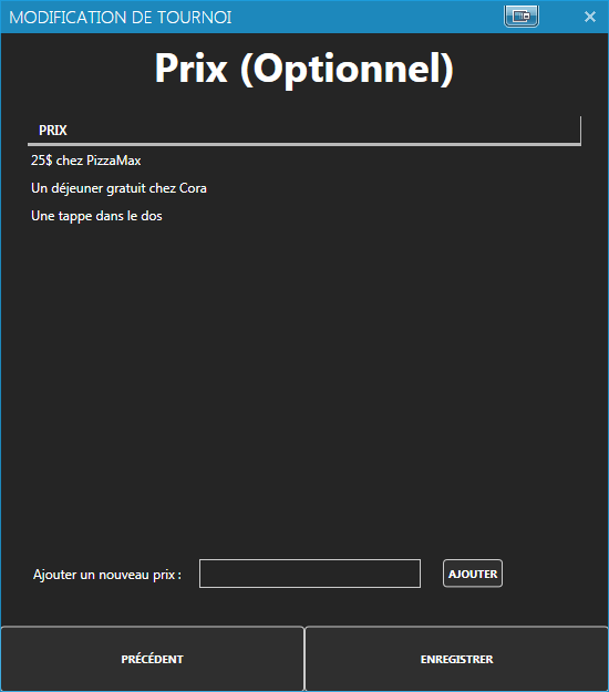 - L'enregistrement des pointages et le suivi du déroulement des tournois.