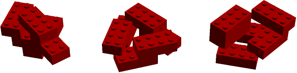 - Model: Our main contribution is to count the number of models. A model is a set of configurations where any configuration in the set can be turned into any other configuration of the set simply by turning bricks where they are connected to other bricks using a single stud. Furthermore, there may be no RC in a model. The picture below shows various configurations belonging to the same model.