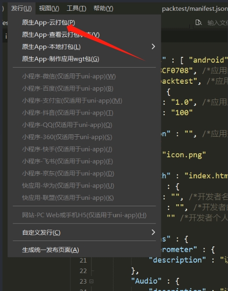 • 如上图,根据你的需要,进行打包即可,过程可能需要几分钟,需要注意的是,在校验过程中最好是采用原生android生成的密钥,如果仅仅是测试,则不需要,一般情况下也可以使用android studio来进行原生环境的打包。