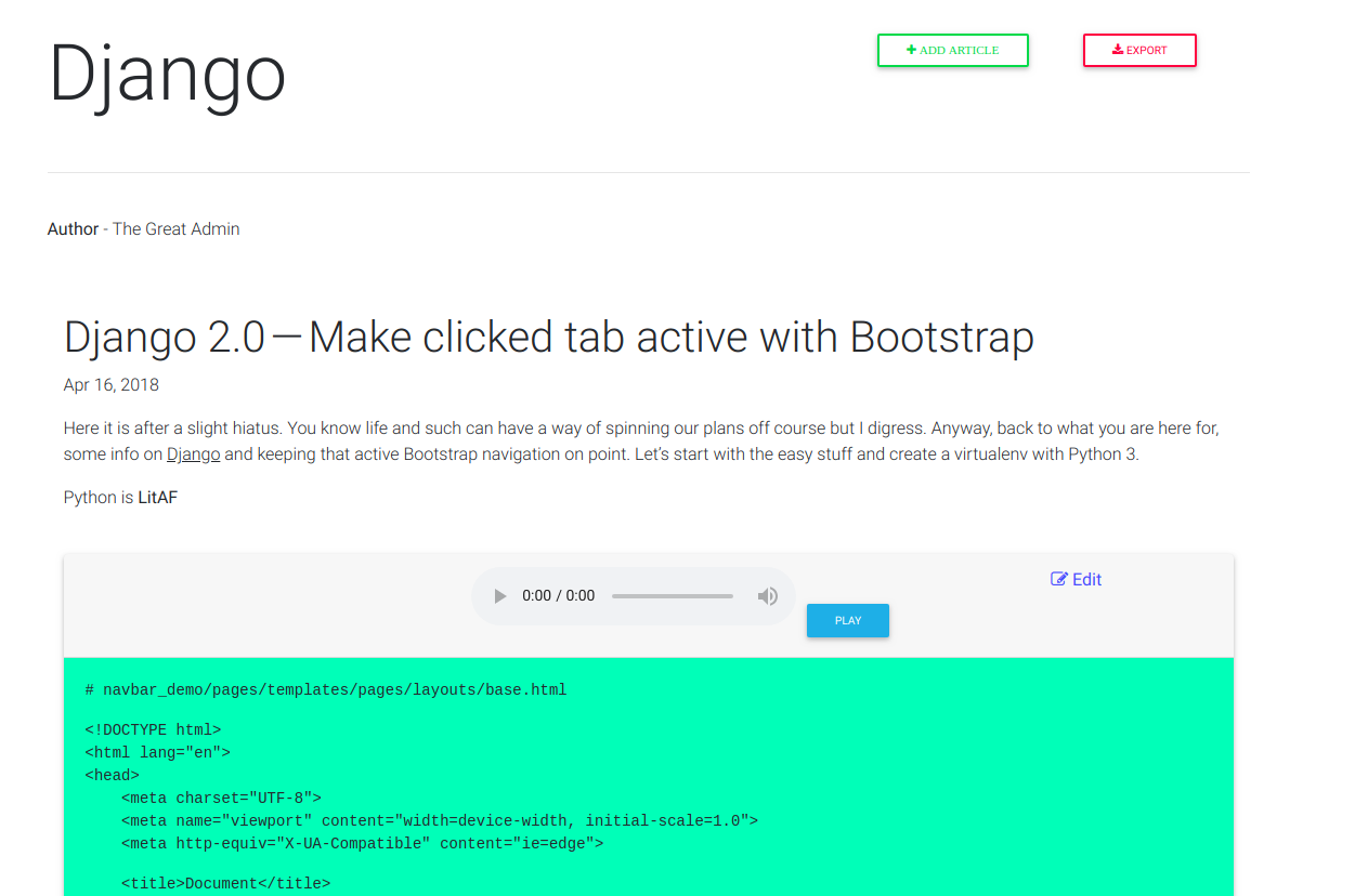 $ python manage.py runserver$ visit 127.0.0.1:8000