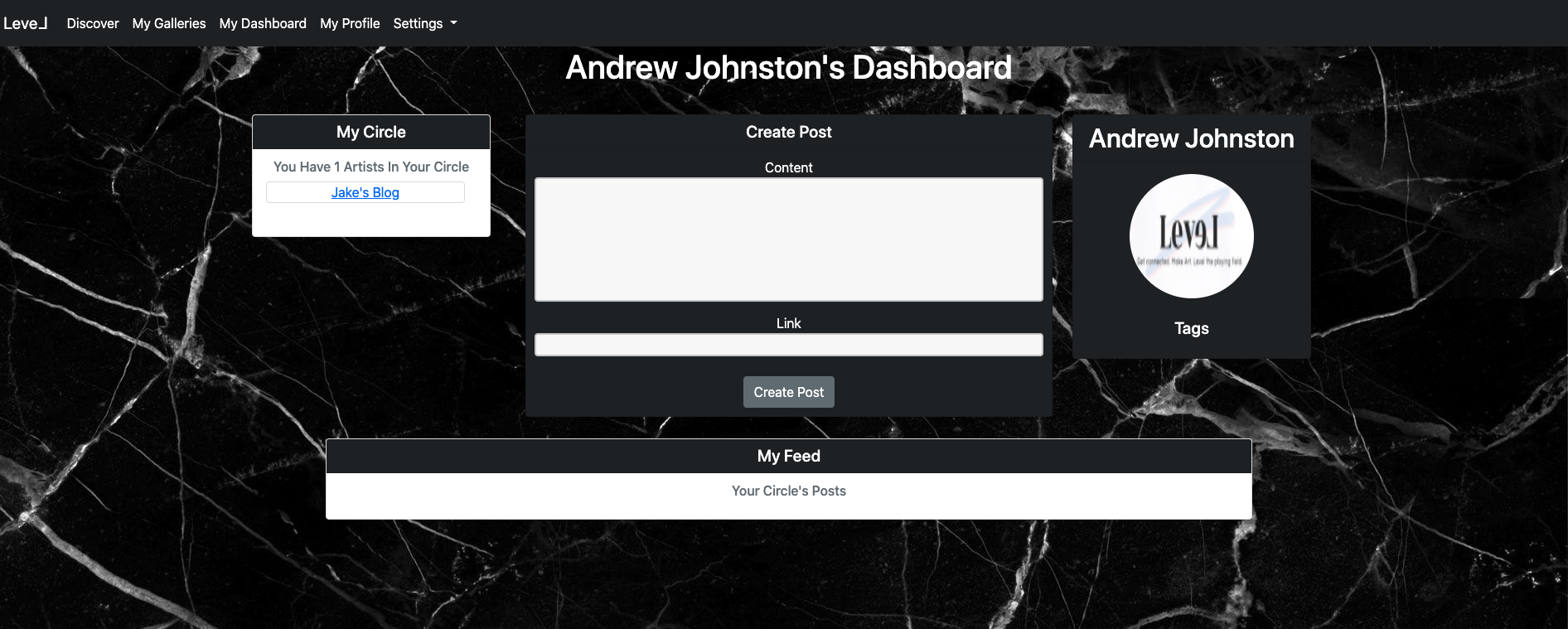 Level is hosted on Heroku between three different repositories of code. A frontend built with a Rails Application utilizting bootstrap. A backend built with an API only Rails applicaton. And a micro service using the Sinatra framework. You the user will only have to interact with the frontend to access the app fully like you would any other app. LEVEL is currently set up to be focused on photographers but we aim to open the platform up to many other mediums (reffered to as "Tags") in the future. LEVEL will allow you to upload and display your work but the focus should be on a curated selection rather than your whole cataloge so as to more narrowly focus on the pieces, themes, or motifs you want to focus on.