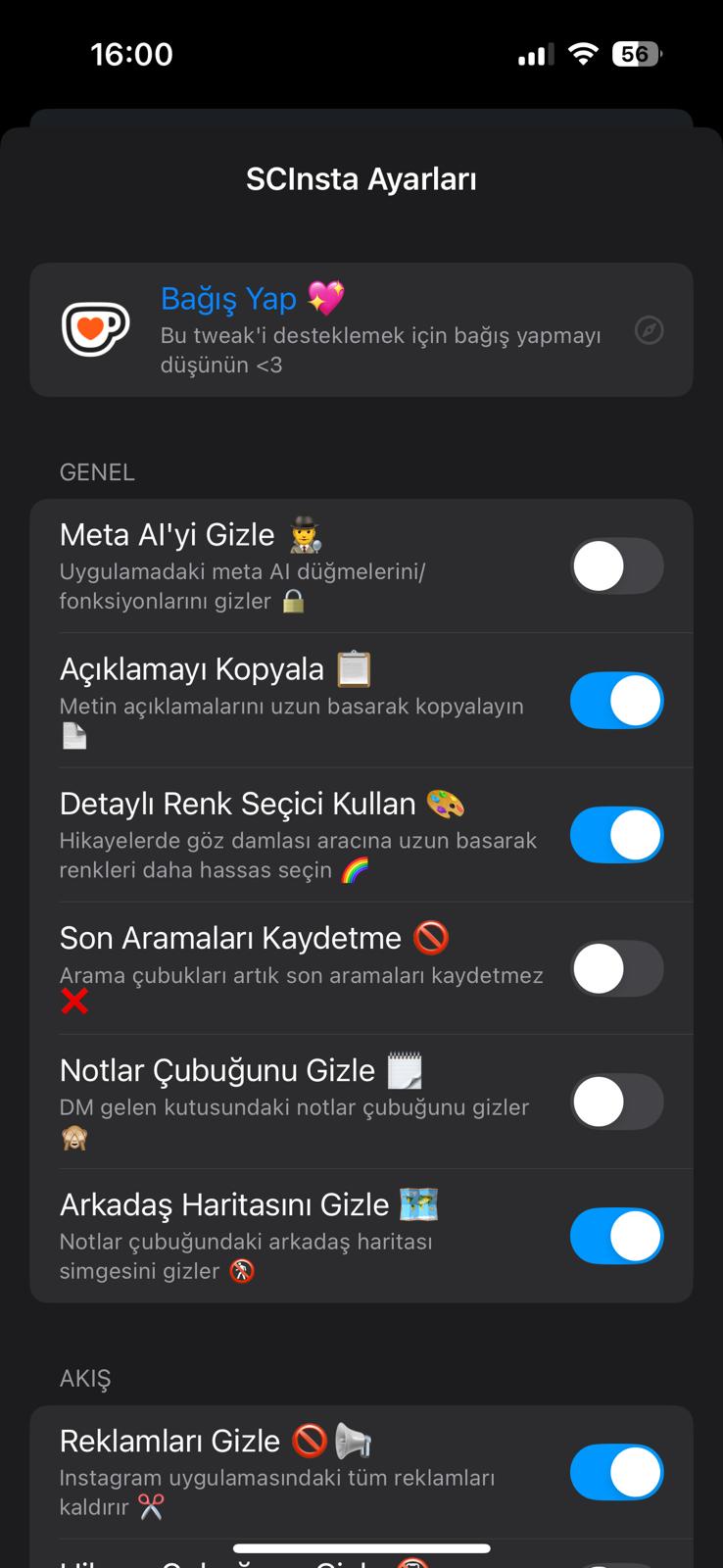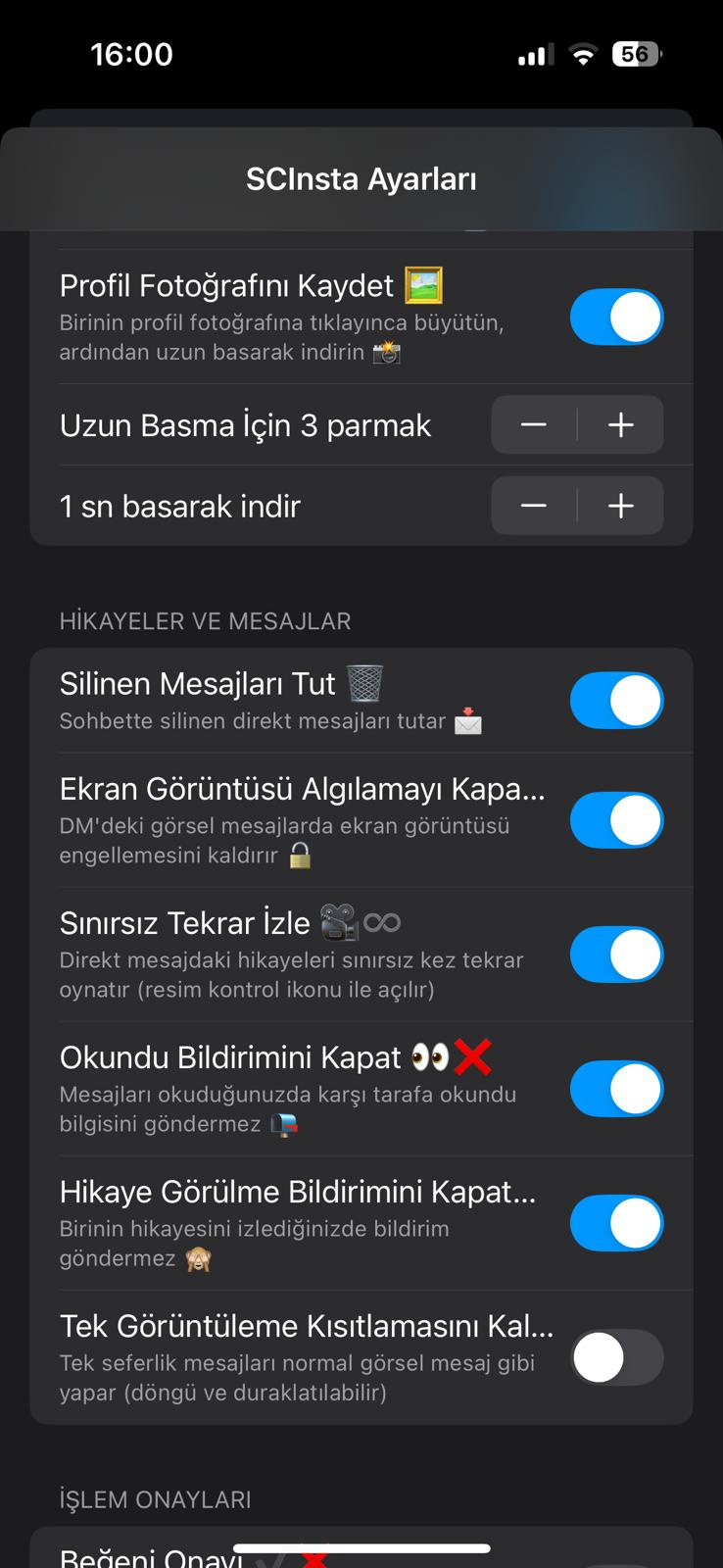 - ⚙️ SCInsta ayarlarını değiştirmek için bu sayfaya göz atabilirsin