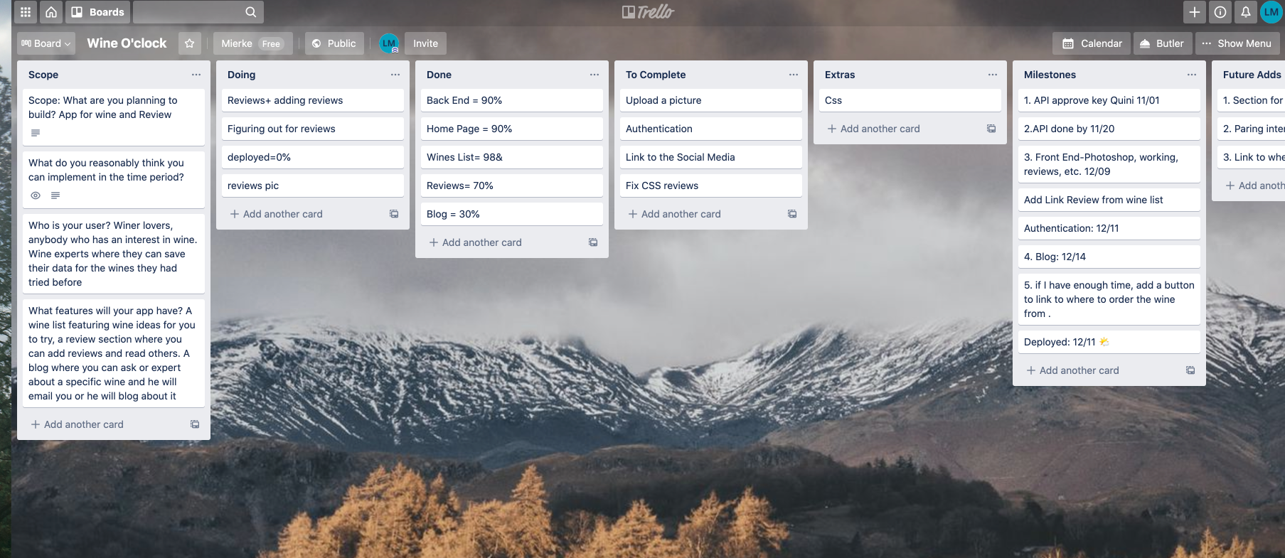 Trello is a website use to plan and create a timeline and To Do list and keep accounting with the project: