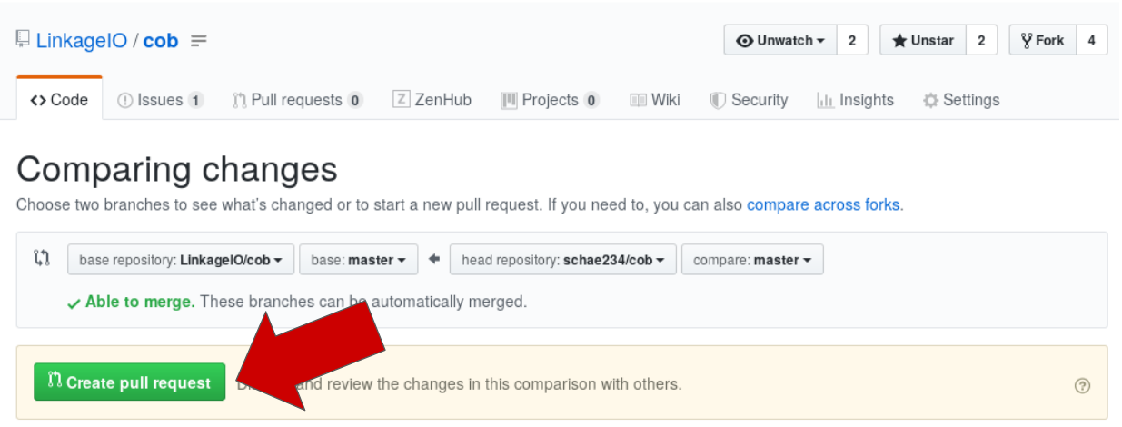 Github will detect any changes between your repo and the main COB repo. Double check that the changes make sense: