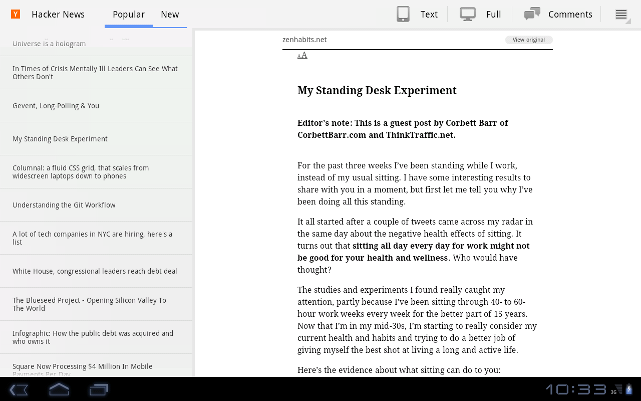 This is a simple HackerNews reader for Android Honeycomb tablets. It uses the API from api.ihackernews.com to grab the stories.