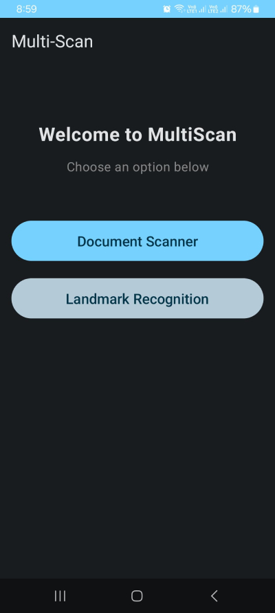 MultiScan is an Android application that combines document scanning and landmark recognition capabilities. Built with Jetpack Compose for a modern UI and TensorFlow Lite for landmark recognition, this project showcases advanced Android development skills.