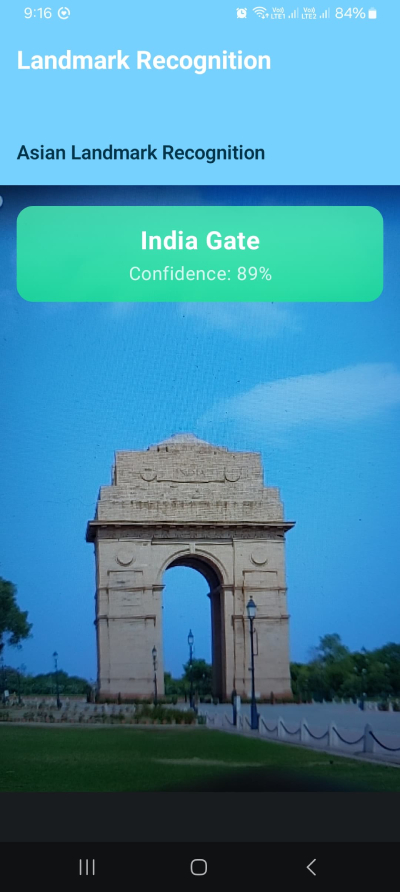 Recognizing India Gate with 89% confidence using TensorFlow Lite.