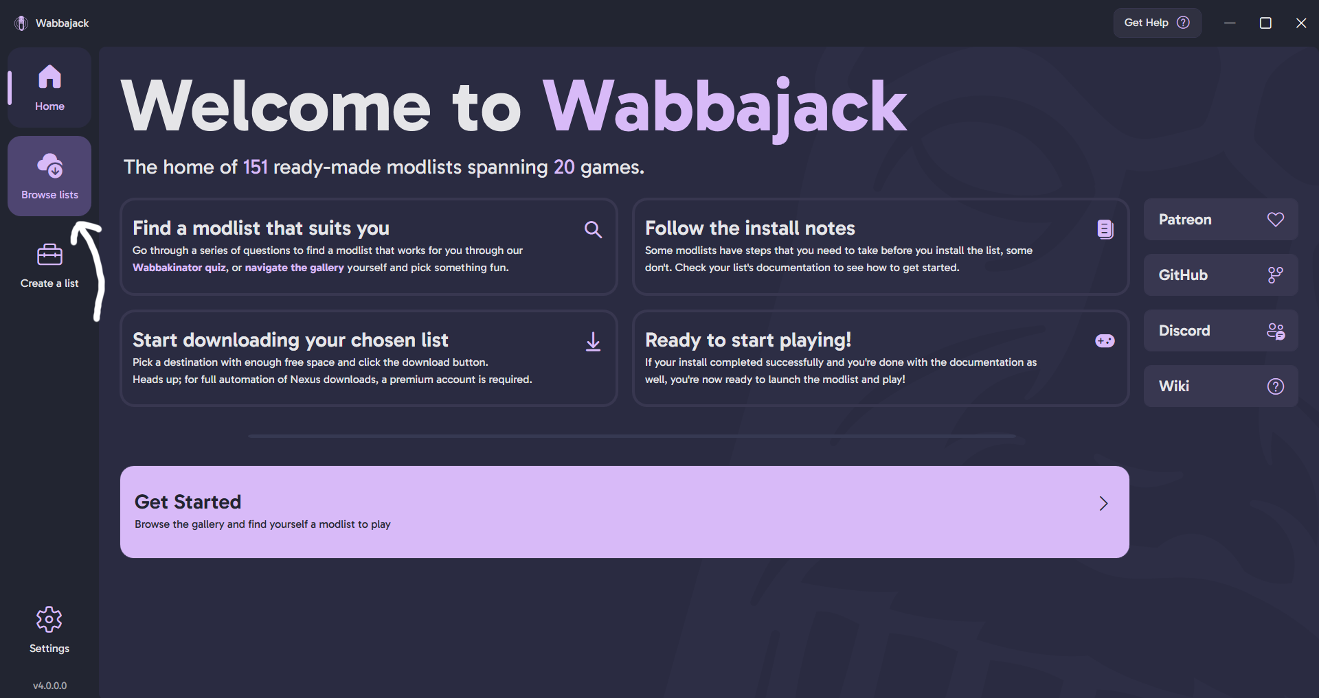 To find the Telsera via Wabbajack's UI, open Wabbajack.exe, and on the left side, select Browse Lists.