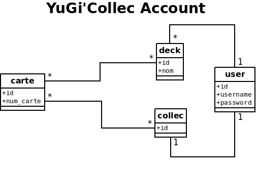 YuGi'Collec utilise deux API distinctes. La première est l'API publique de "ygoprodeck". Elle permet à l'application de récupérer l'ensemble des cartes Yu-Gi-Oh afin de récupérer leurs informations et leurs images. La seconde est "YuGi'Collec Account API" conçu spécialement pour créer et gérer les comptes de chaque utilisateurs de l'application. C'est grâce à celle-ci que YuGi'Collec peut gérer les collections et les decks et de tous les utilisateurs.