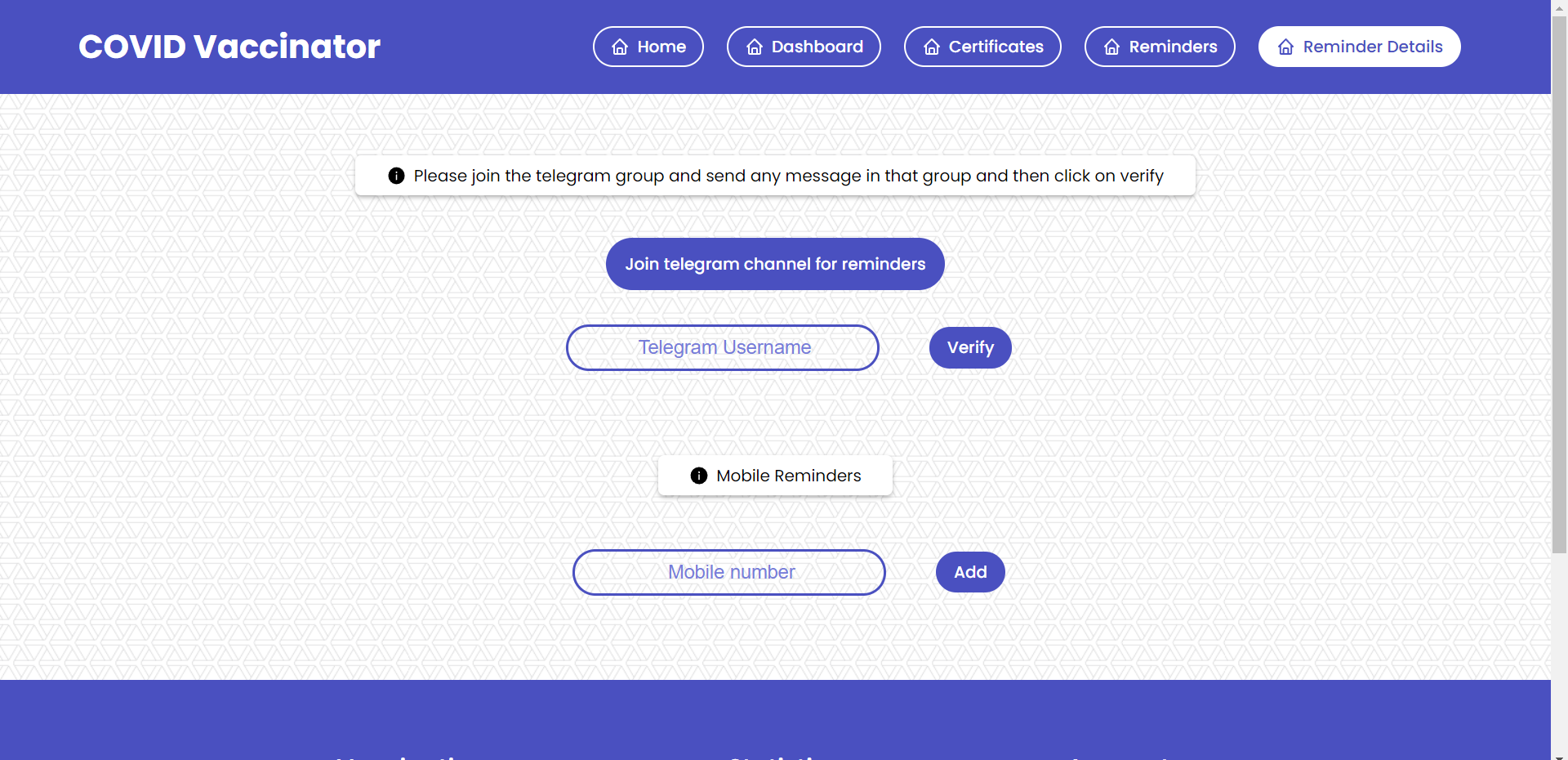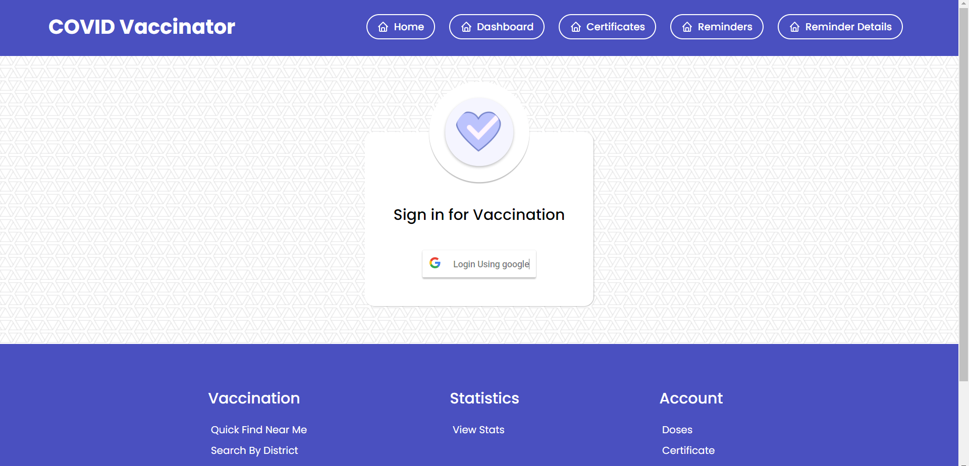 Complete All-in-one solution consolidated in a single mobile app/ web app through which people can track, manage, and get reminders for their vaccine slots