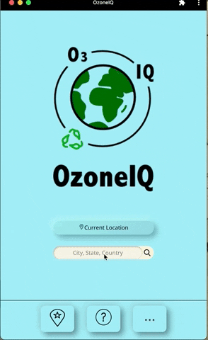 Also available on the main landing page is a footer the user can access to navigate the app without choosing a location. The user has access to their saved locations, a resources page which provides general information about the air quality index and how to stay safe in poor air quality conditions, an about page which provides information about our team and the inspiration behind the production of this app.