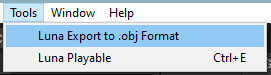 - Open the Terrain Exporter via the Unity Tools tab (the same place that Luna Playable is located)