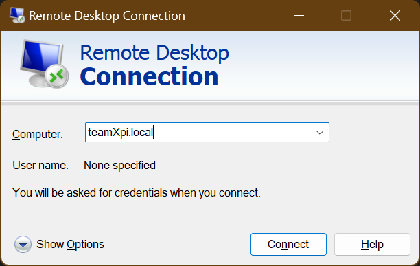 On a Windows device, you can use the preinstalled "Remote Desktop Connection" app. For "Computer", enter your team's hostname, teamXpi.local where X is your team number.