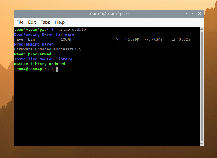 maslab-updateIf everything goes well, you should see something similar to this in your shell: