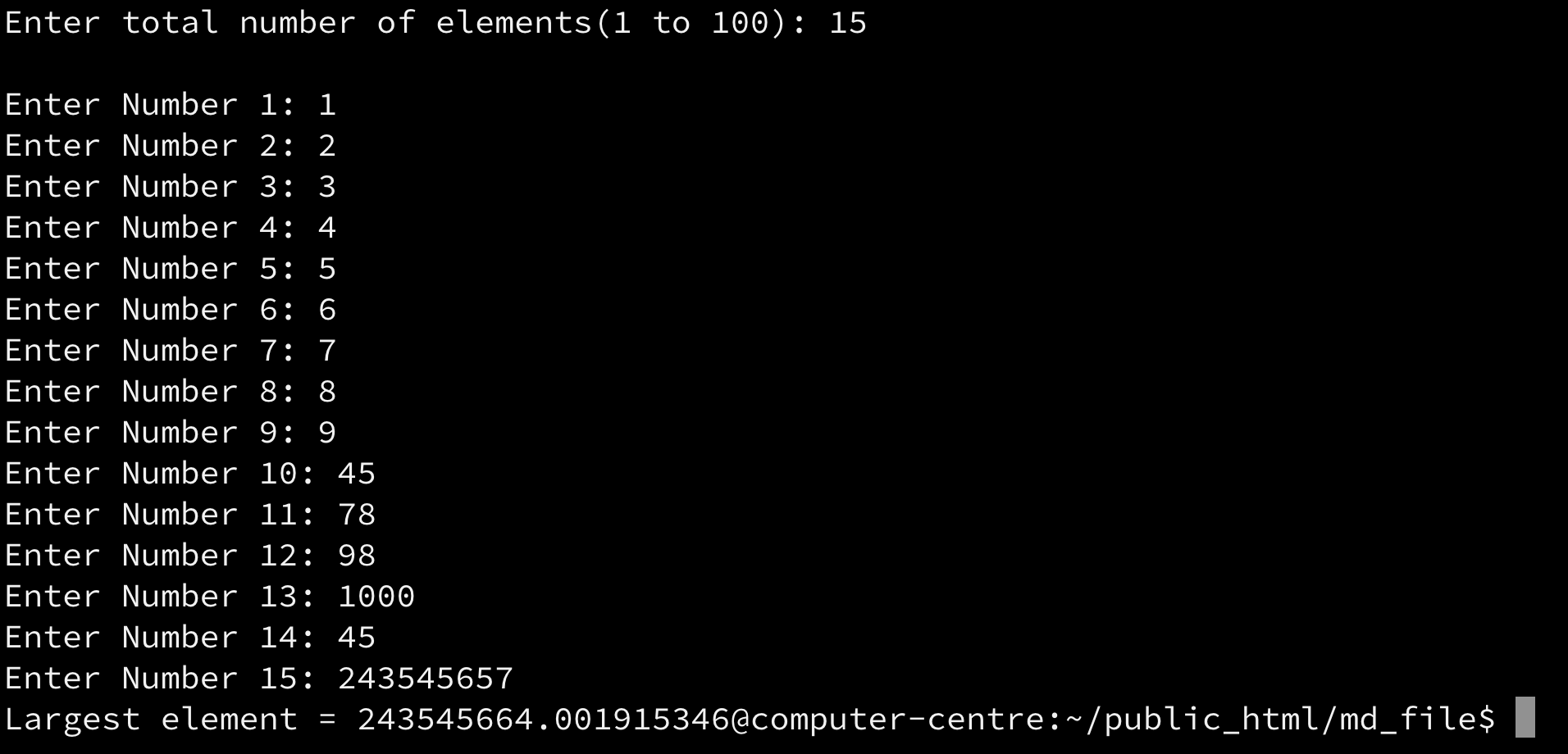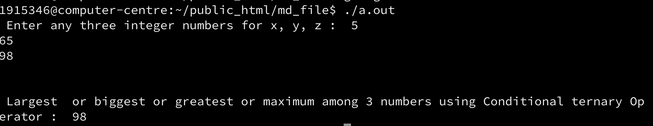printf("\n\n Largest or biggest or greatest or maximum among 3 numbers using Conditional ternary Operator : %d", large) ;