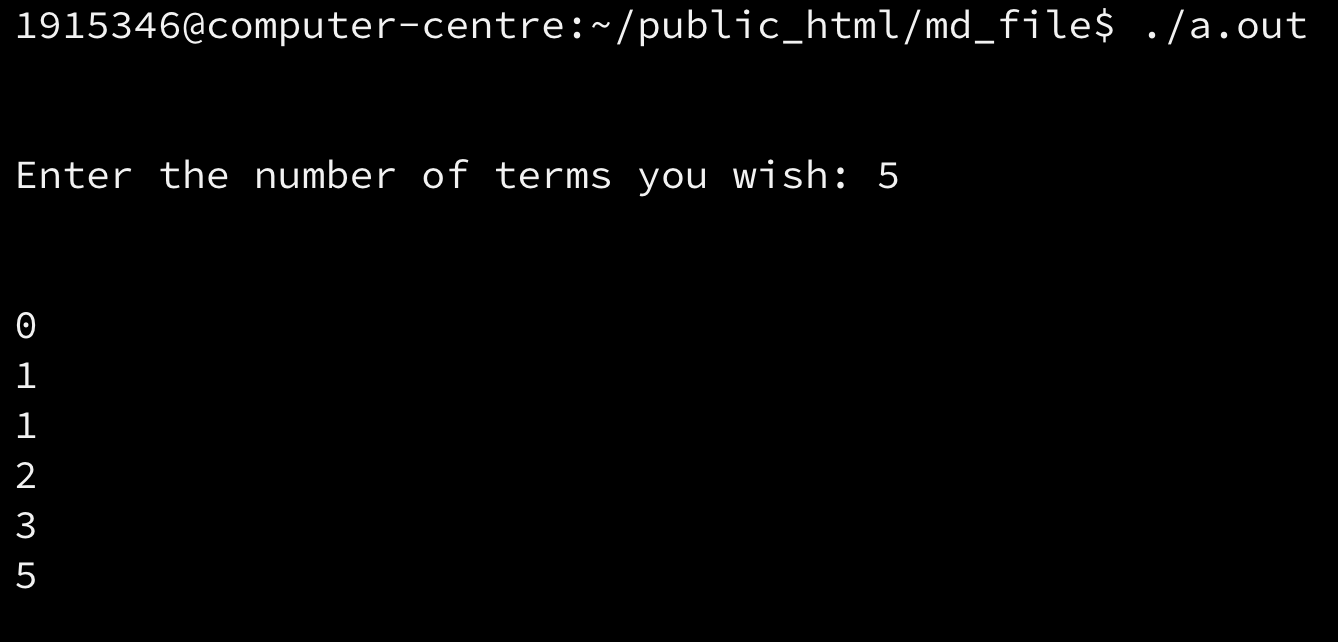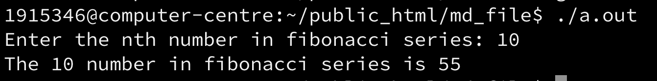 printf("The %d number in fibonacci series is %d\n", num, result);