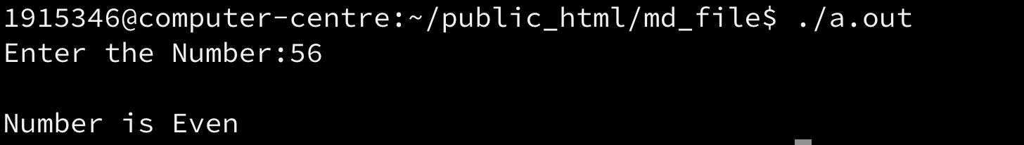 /* To find whether number is even or odd */#include<stdio.h>intmain() {