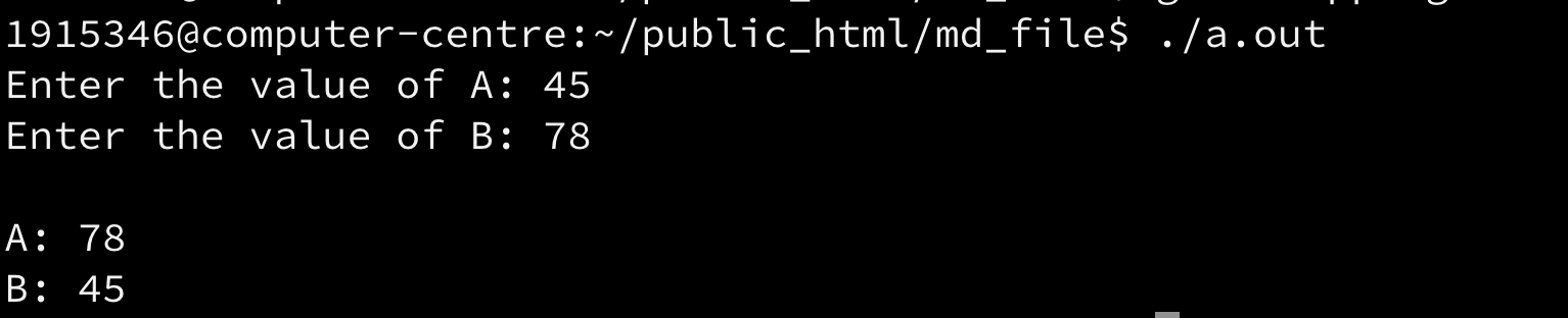 /* Swapping without 3rd variable */#include<stdio.h>intmain() {