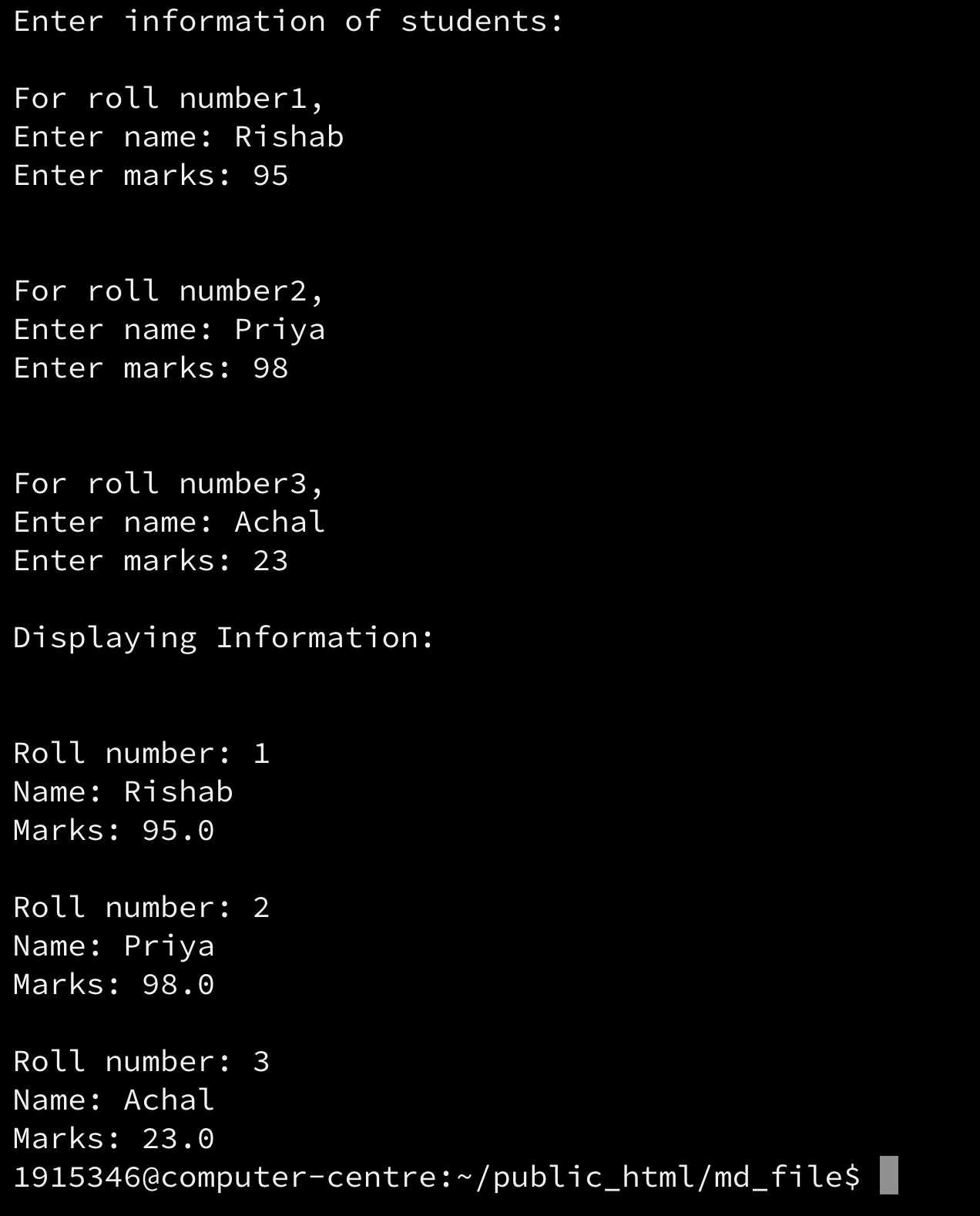 agg=s1+s2+s3+s4+s5; // Aggregate Marksperc=agg/500.0*100; // Perc Marksif(perc>=90)