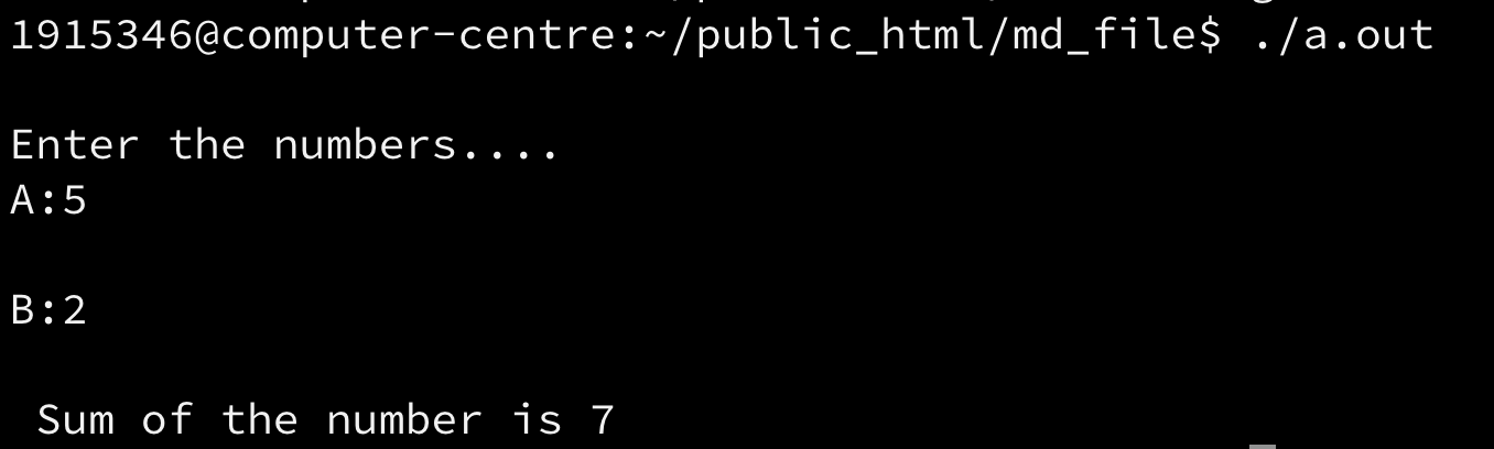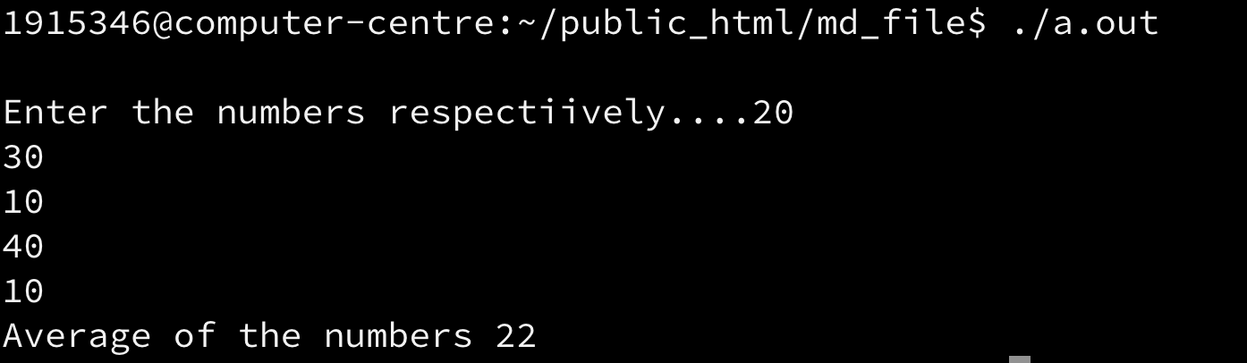 res=avg(a1,a2,a3,a4,a5); // function callprintf("Average of the numbers %d",res);