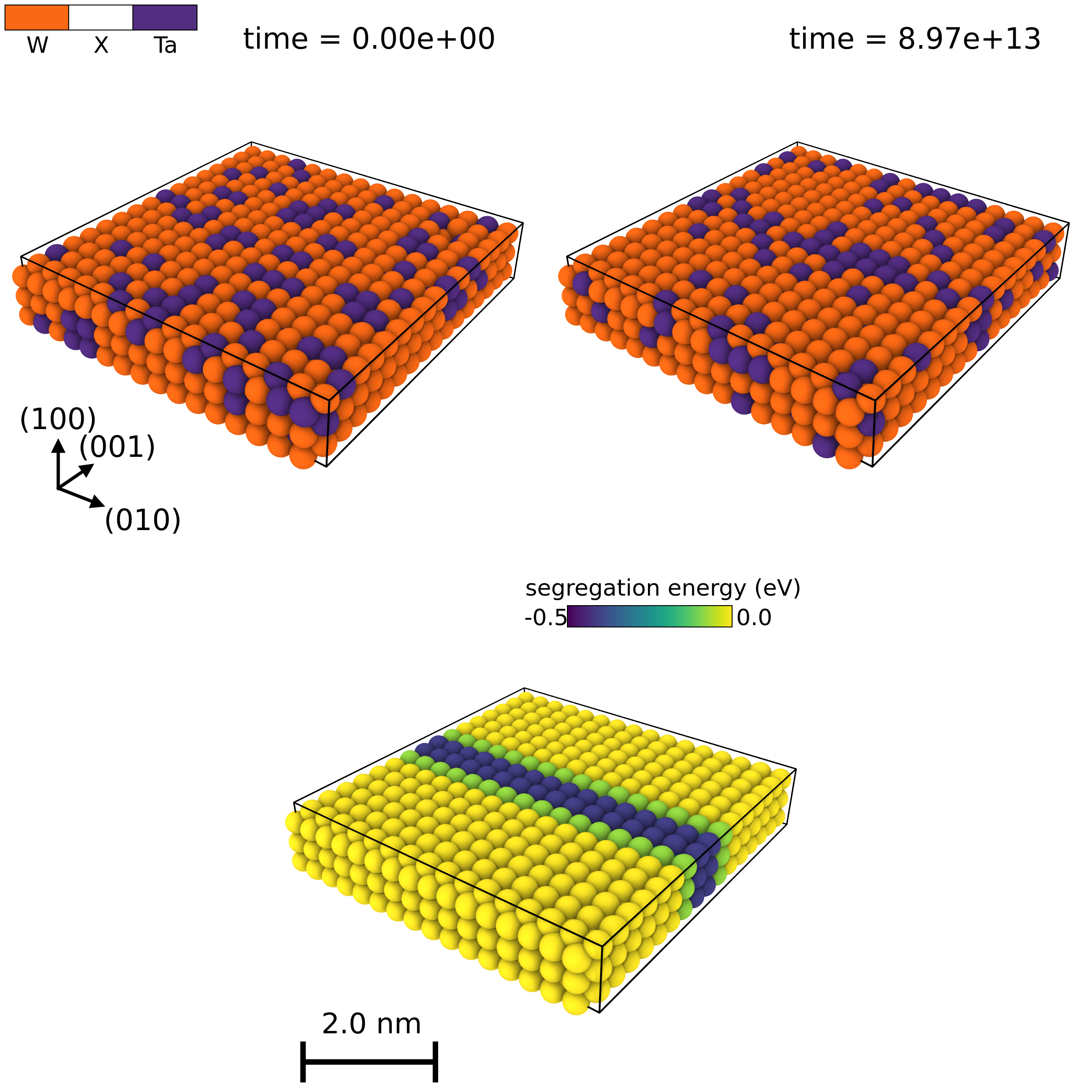 return imgHere, this could be any particle-dependent property, rather than segregation_energy. We also render all of these using the Tachyon renderer, which makes things prettier in my opinion. We can then render all three of these, and combine them into one image: