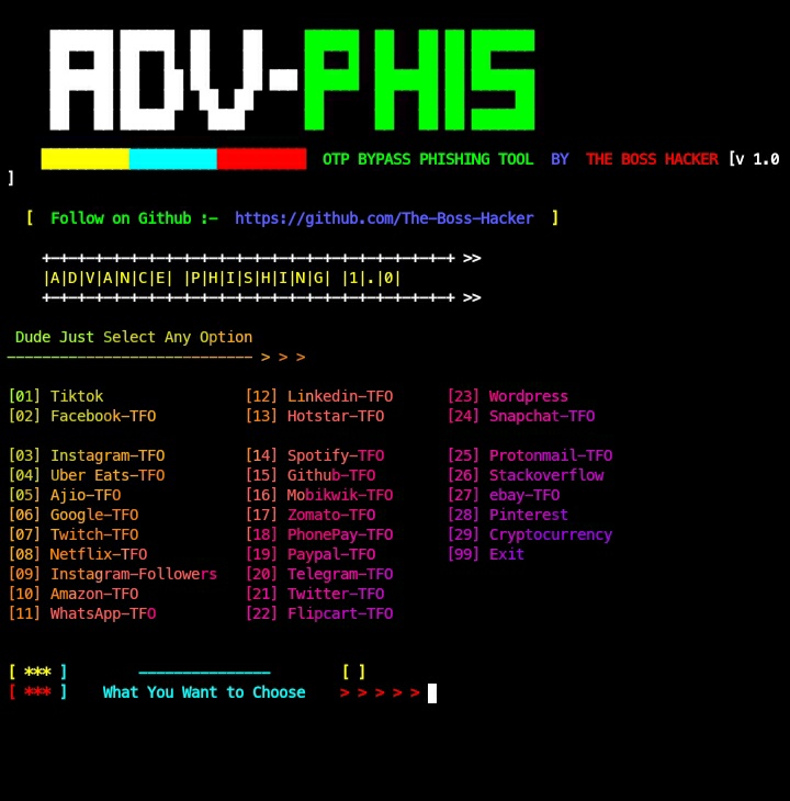The use of the Adv-Phishing is COMPLETE RESPONSIBILITY of the END-USER. Developers assume NO liability and are NOT responsible for any misuse or damage caused by this program.