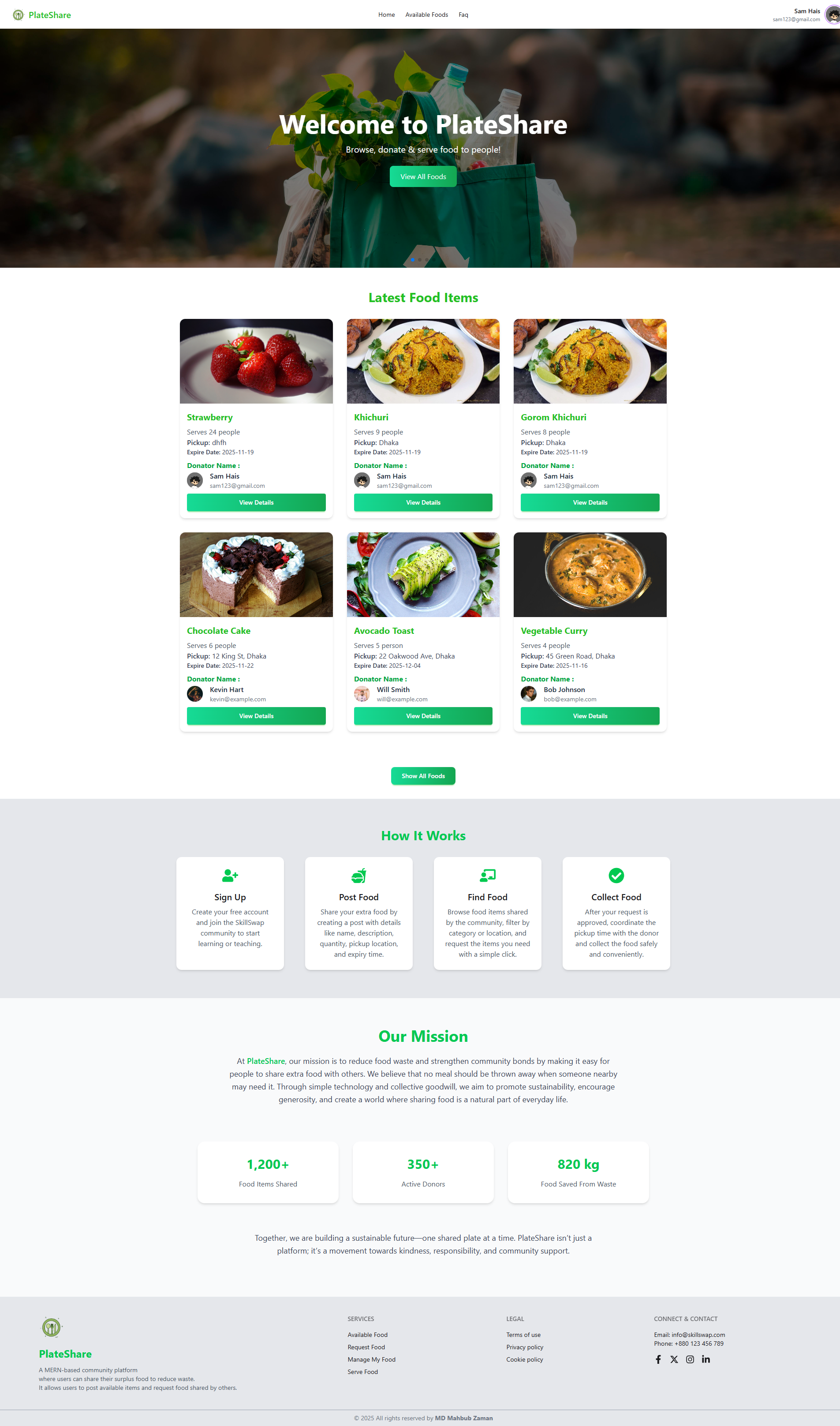 PlateShare is a full-stack MERN application designed to reduce food waste by connecting people who have surplus food with those in need. Users can easily post food items they wish to donate, while others can browse available items and submit requests to receive them. The platform fosters community engagement, promotes sustainability, and ensures that extra food reaches those who can benefit from it.
