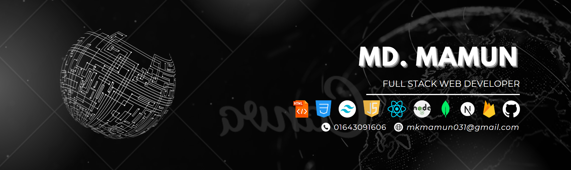 My name is Md. Mamun. Highly motivated full stack web developer with a strong foundation in JavaScript, HTML, CSS, React.js, Node.js, Express.js, MongoDB, DOM manipulation, and OOP. Experienced in designing, developing, testing, and implementing web applications using Next.js, JWT, APIs, Tailwind CSS, and Postman. Committed to strengthening, optimizing, and re-engineering web solutions.