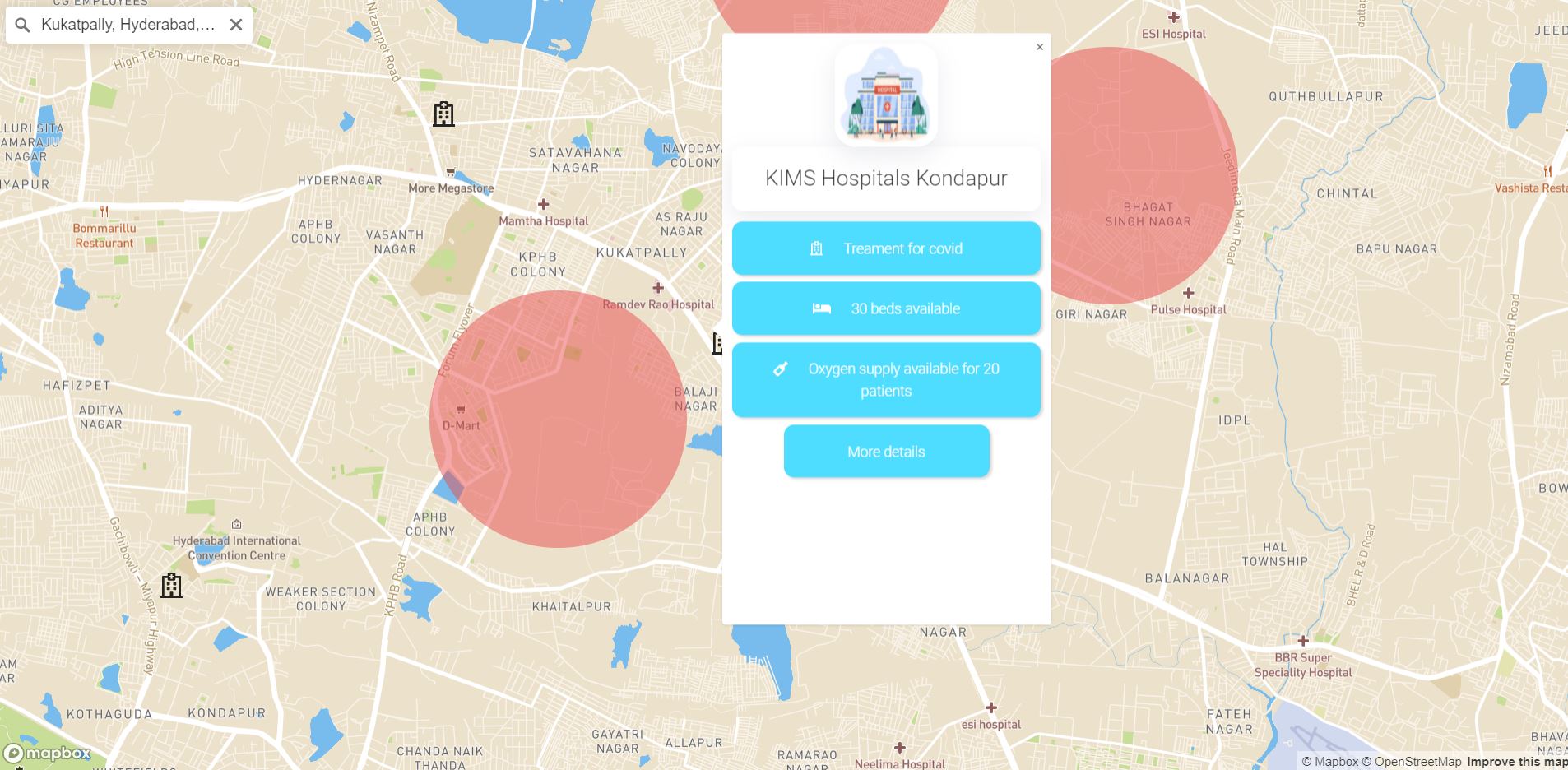 • Information related to the individual hospital, no of beds, oxygen, doctors available.
