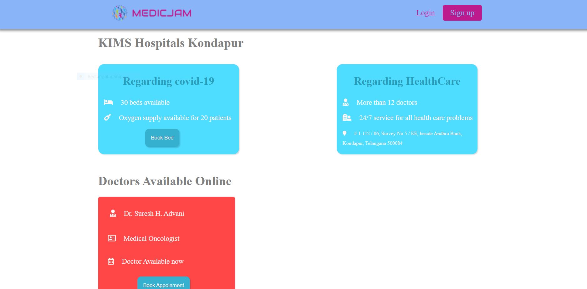 Medical based application, provides information about hospitals available in a specific area, the patient can also browse information about oxygen cylinders, number of beds, doctor information