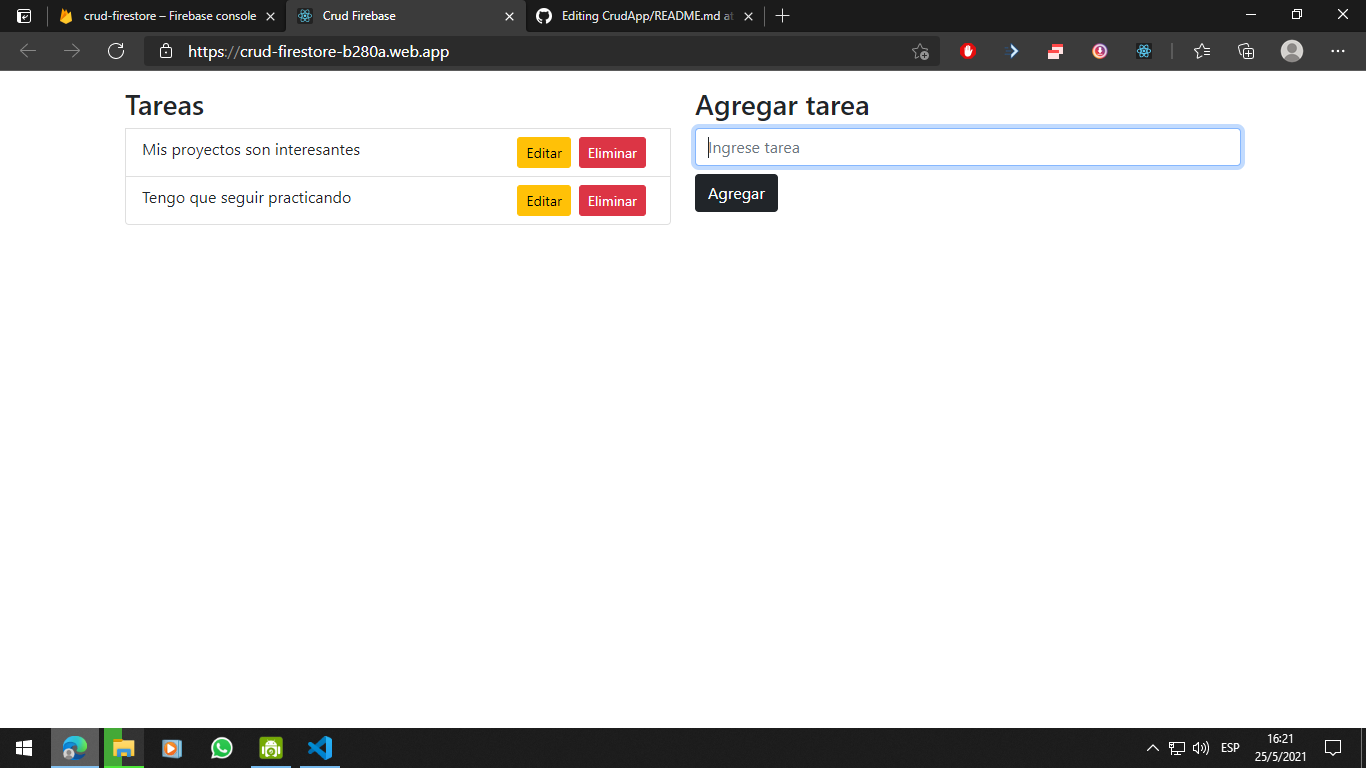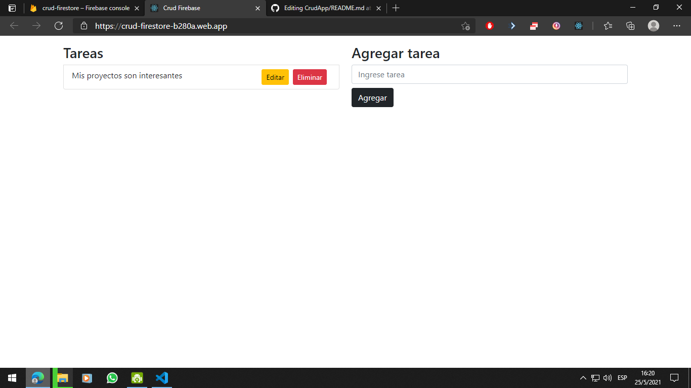 Crud App with Firebase✨ Aplicacion de un unico componente de practica para la implementacion de Firebase y Firestore Link para probar la app: https://crud-firestore-b280a.web.app/ ** ** ** ** ** **