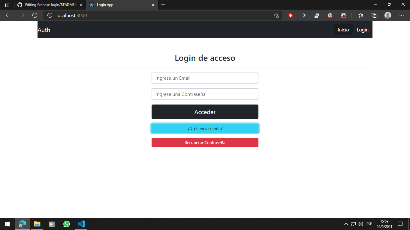 **En este proyecto hago la utilizacion de Firebase para hacer un formulario de login, acceso y recuperacion de contraseñas totalmente funcional, con sus validaciones y errores a traves de correo electronico.