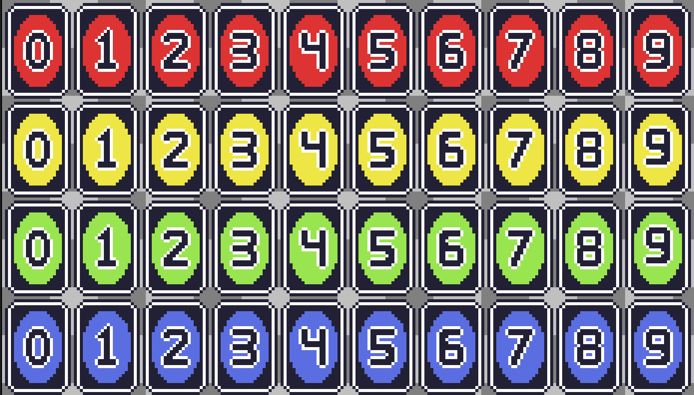 - [A FAIRE] : Modifier les incohérences entre les sprites (pixel en trop, nombres mal placés, ...)