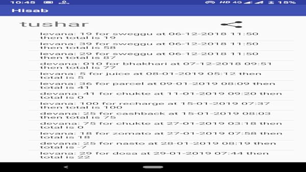It is app to note down all trades with we have done with friends ..It is like account sheet and we can share it with friend also
