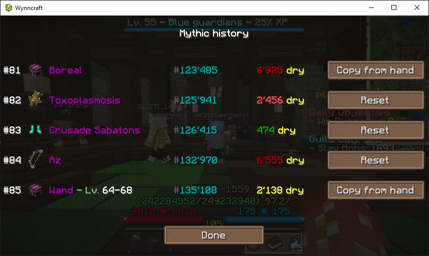 .jsonfiles containing dry- chest count- and mythic find data before loading them. - Fixing a bug where using other languages than English would cause items not to get tracked.