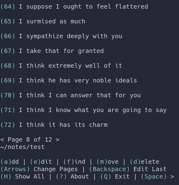 Pages can be changed using arrows, home/end, or numbers.