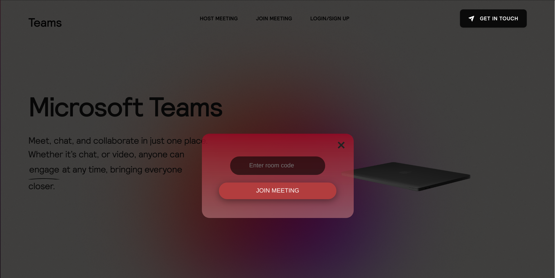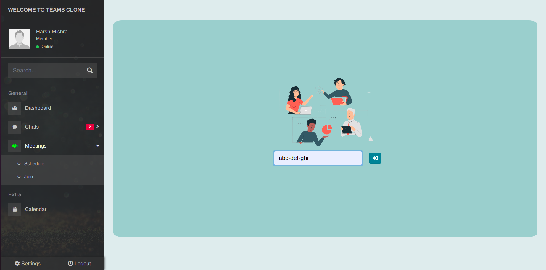 - When clicked on join a meeting, a new popup shows, users can paste the meeting code and join meets.