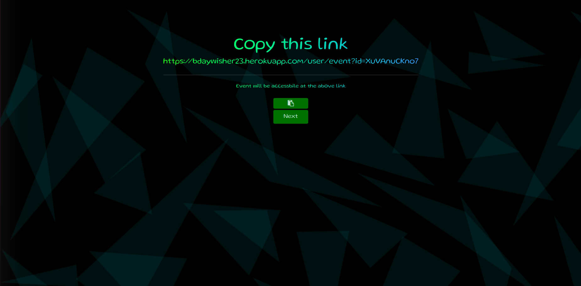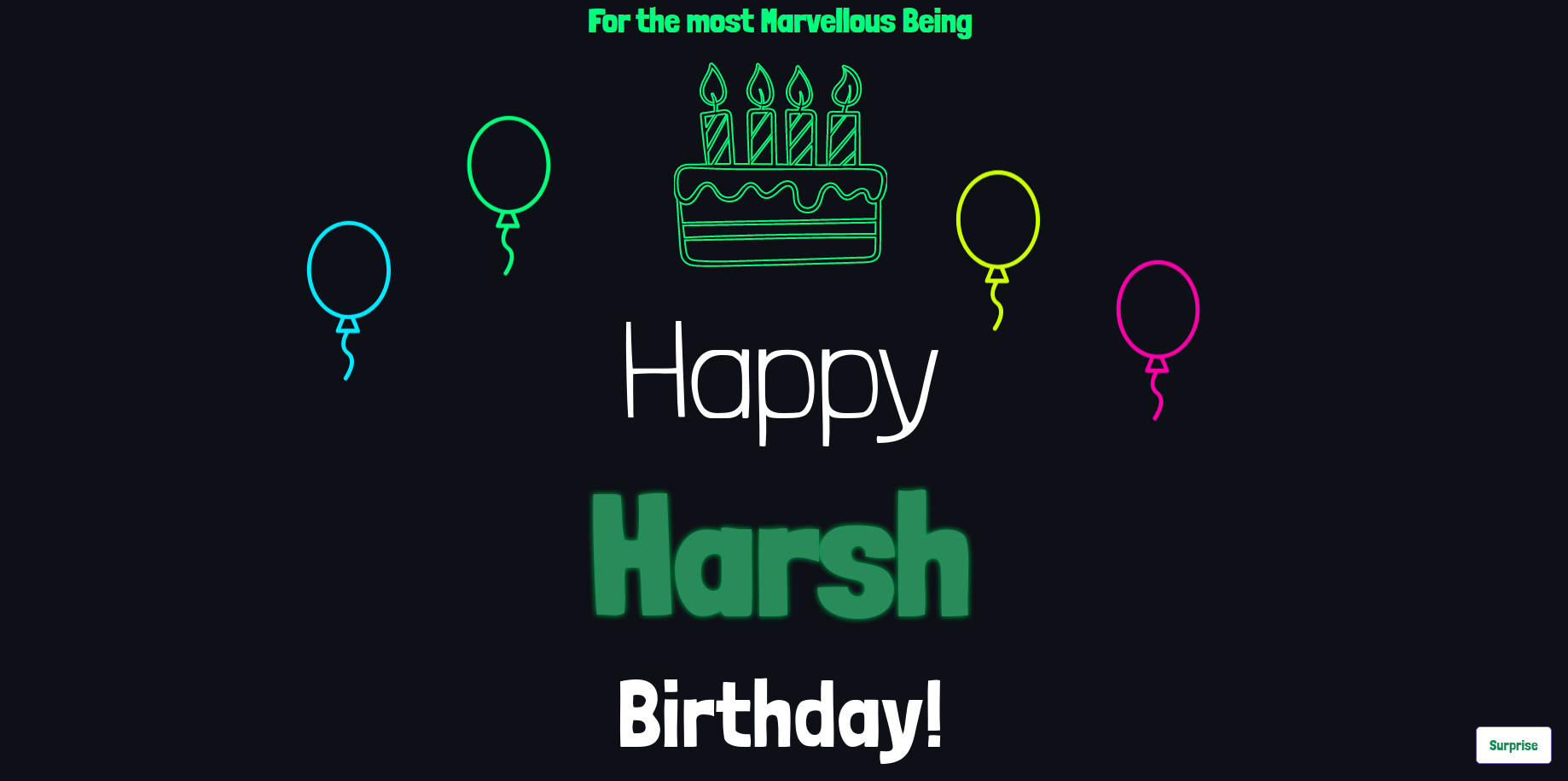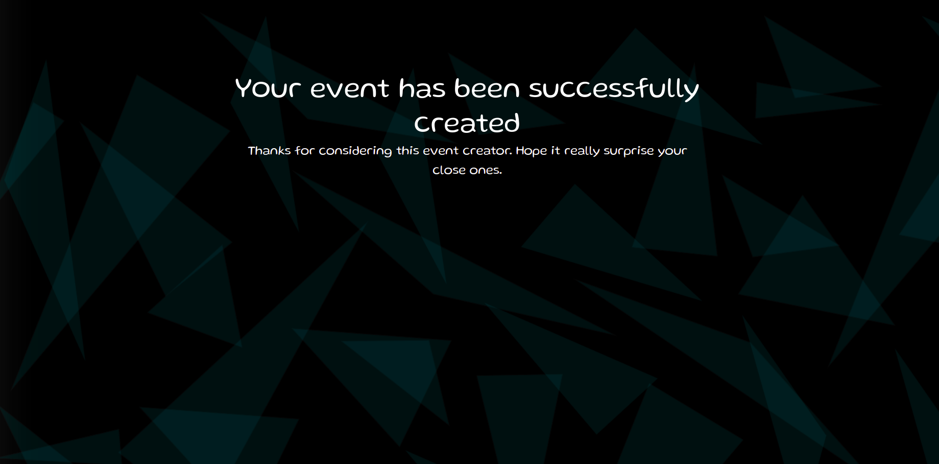 This portal provides you with the easiest way to create an incredible birthday surprise without putting in a lot of effort. Secured via pin, no one could ever know what the event was all about. The events' creation and destruction timing feature make this web app cooler than the other trivial methods.