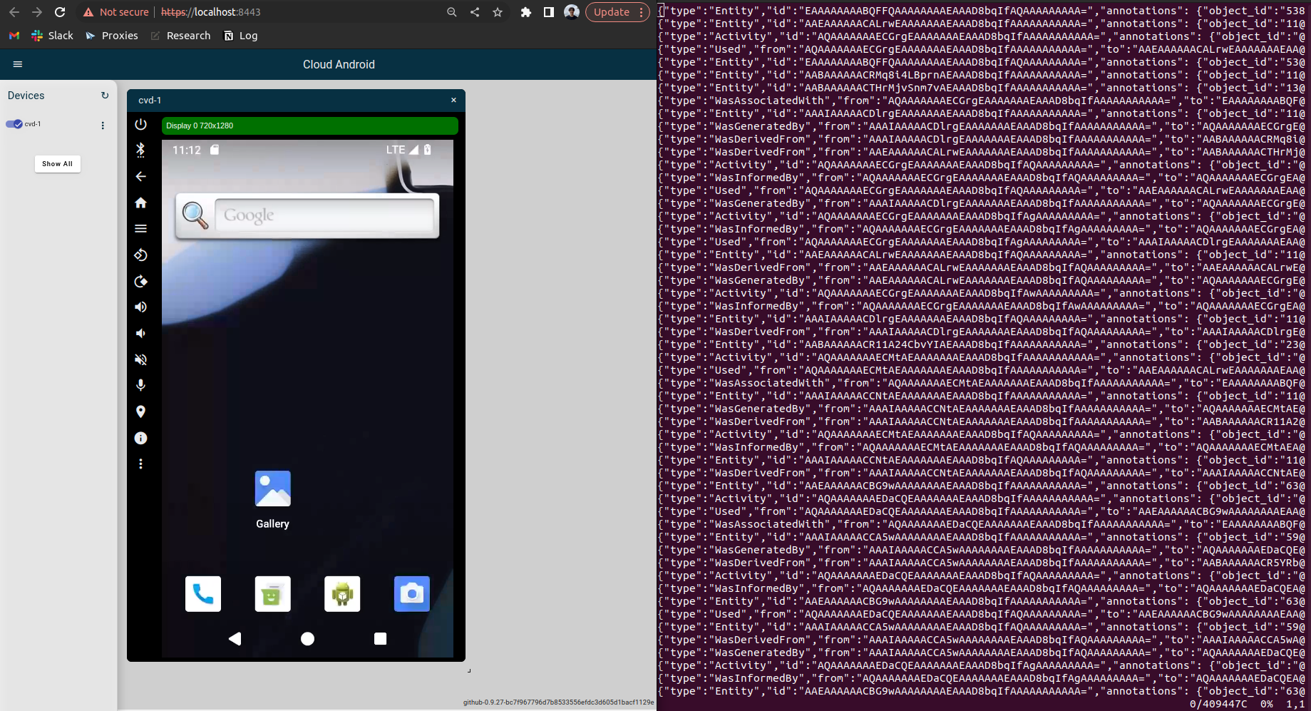 audit.loglocated at/data/local/tmp/that contains provenance log entries. Note that the log may be empty if your capture configuration is set to not capture anything, as defined in the defaultcamflow.ini.# enter android cuttlefish shell as root make root && make shell cd /data/local/tmp vi audit.log