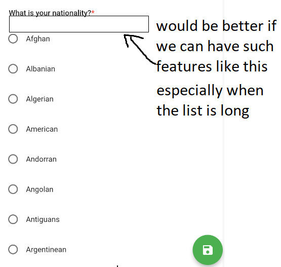 Is it possible to have a search functionality for long list of choices (Eg: Country List , Person's Nationality etc..)