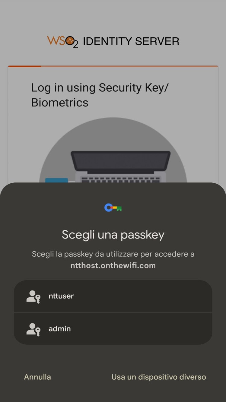 BEWARE: using Security Key/Biometrics as a mandatory factor will require you to have at least 1 Passkey enrolled for that account, otherwise you won't be able to login. If this is the first time experimenting with MFA on WSO2 IS, go for the first option (single step with Username & Password + Biometrics) so that you can login to your account via username and password and create a Passkey from this application.