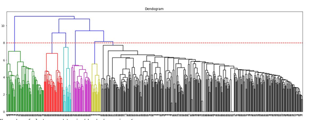 The function dendogram_() makes a dendrogram for binary and TF matrices only. For TFIDF matrix, another function, dendogram_tfidf() is used. It is because of the relative distance from the root to the leaves in both dendrograms are different. Hence to draw a correct line, at correct height across the dendrogram requires different lines of codes for TFIDF and the other two matrices. The ideal numbers of clusters from the dendrogram are the output for both functions along with the drawn graphs. The figures below show the dendrogram for each document term matrix:
