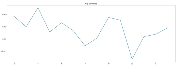 The function silhouette_() plots average silhouette coefficient against number of clusters for the three documents term matrices. The maximum silhouette from the graph resulting from its corresponding number of clusters is taken as the output of the function. The figures below show the silhouette curve for all three document term matrices: