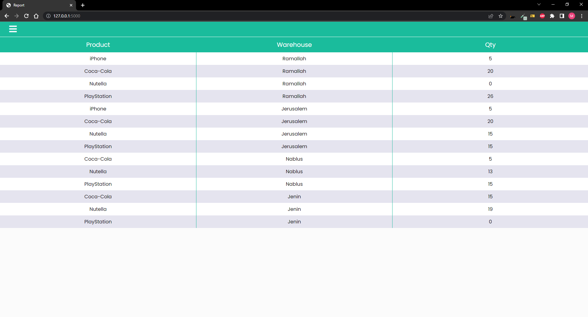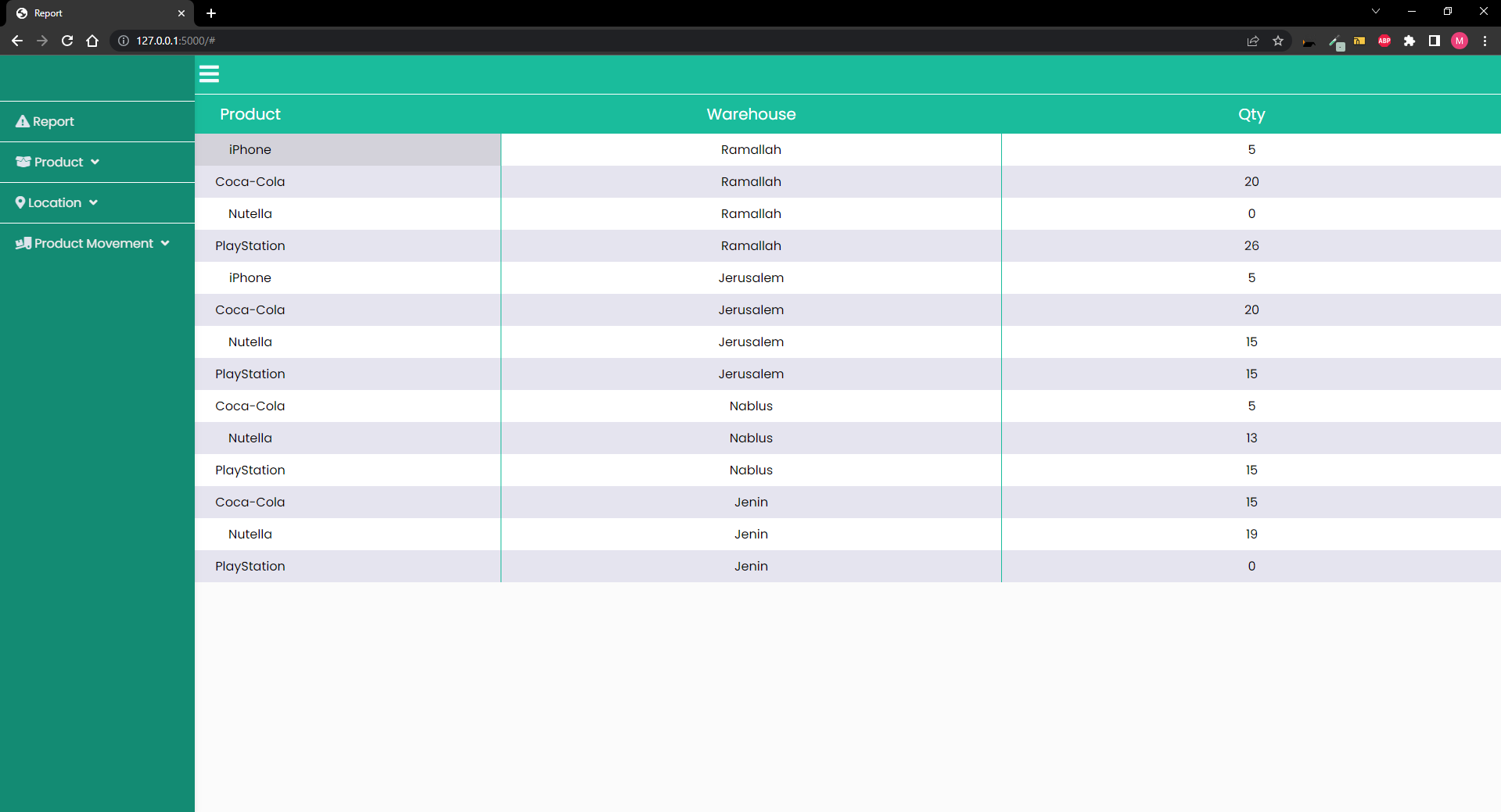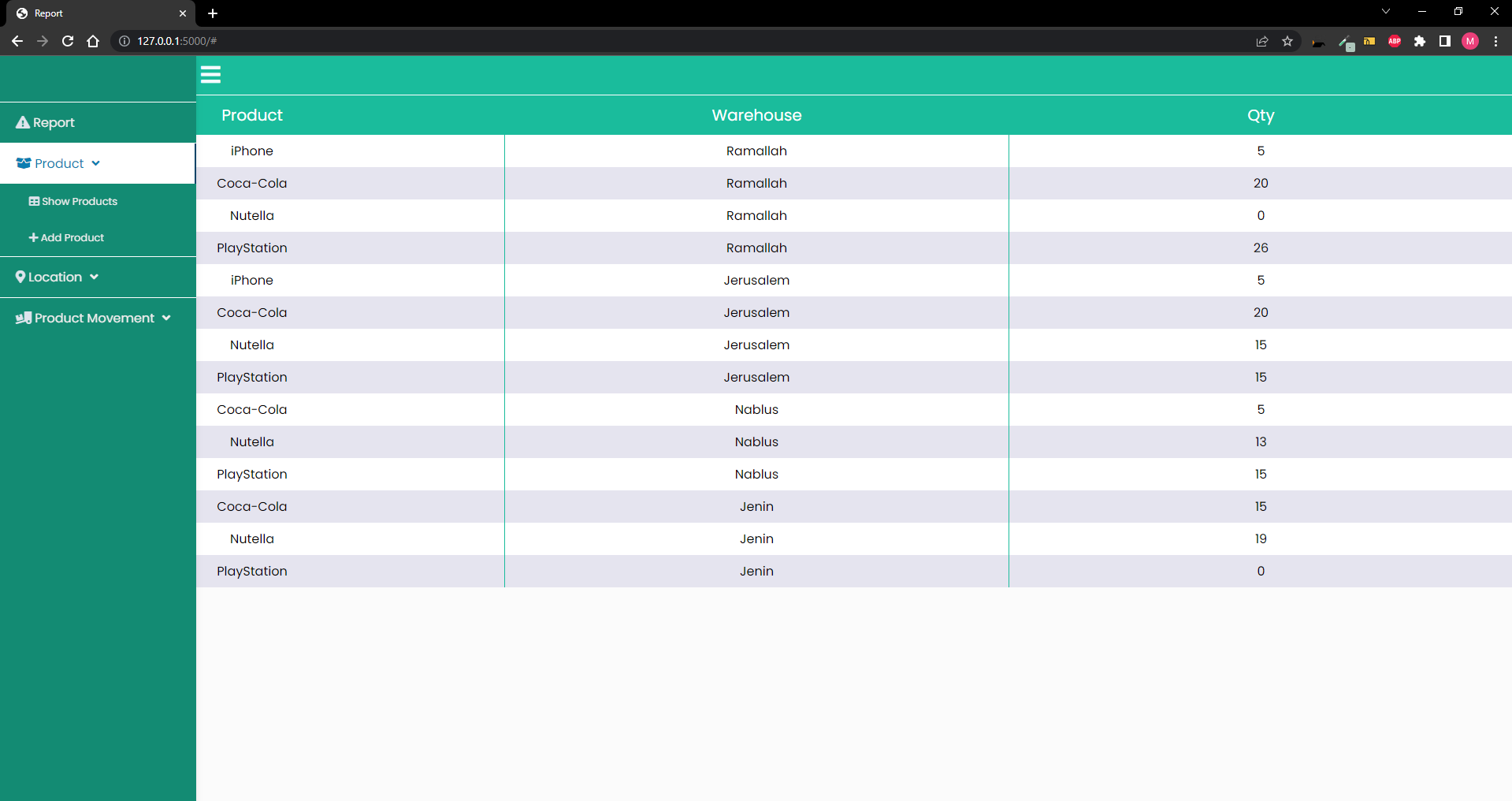 This is a test project for ERPMaxSolutions to create a web application using Flask framework to manage inventory of a list of products in respective warehouses.